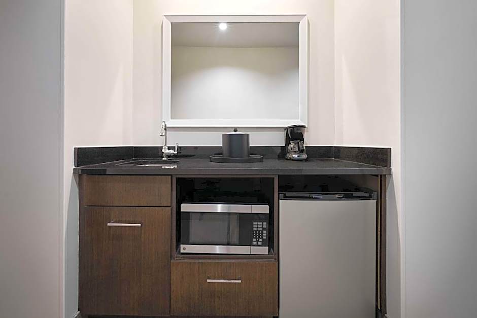 A seating area with a sofa bed is featured in this suite. A microwave, small fridge, and coffee-making facilities are included. A wetbar is in this Suite, as well.